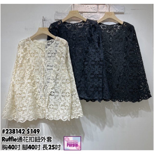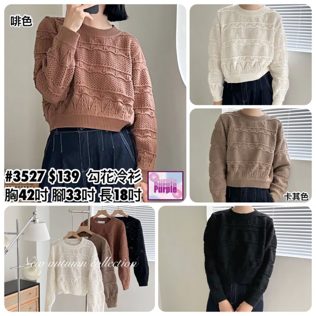 (現貨) #3527 BONNIE勾花冷衫(胸42吋 腳33吋 長18吋)