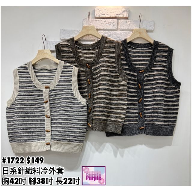 (訂貨大約20天) #248256 針織料橫間冷衫 (胸48吋 腳42吋 長25吋)