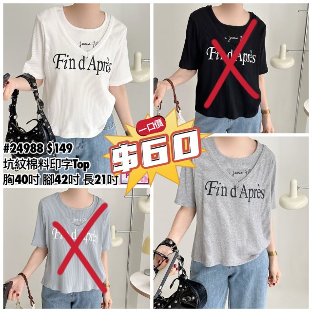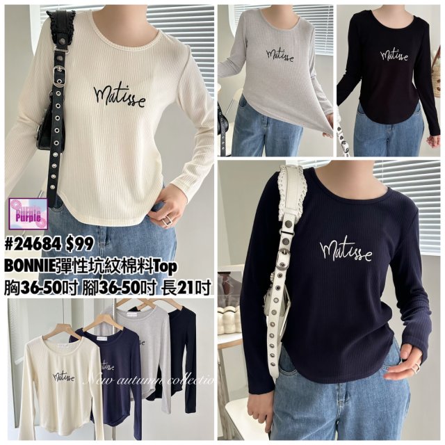 (現貨) #24988 BONNIE坑紋棉料印字Top (胸40吋 腳42吋 長21吋)