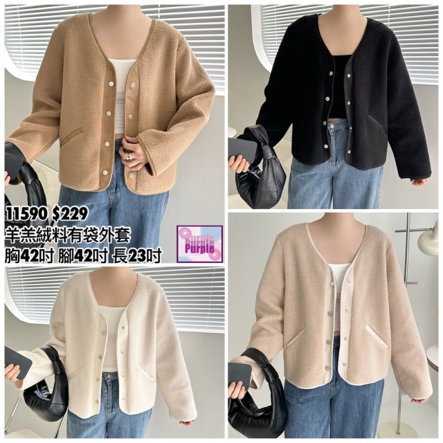 (現貨) #11590 BONNIE羊羔絨料有袋外套 (胸42吋 腳42吋 長23吋)