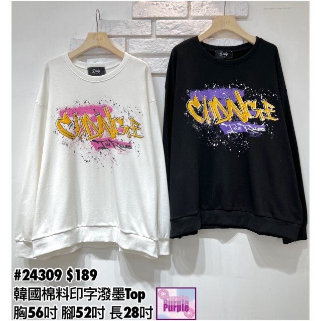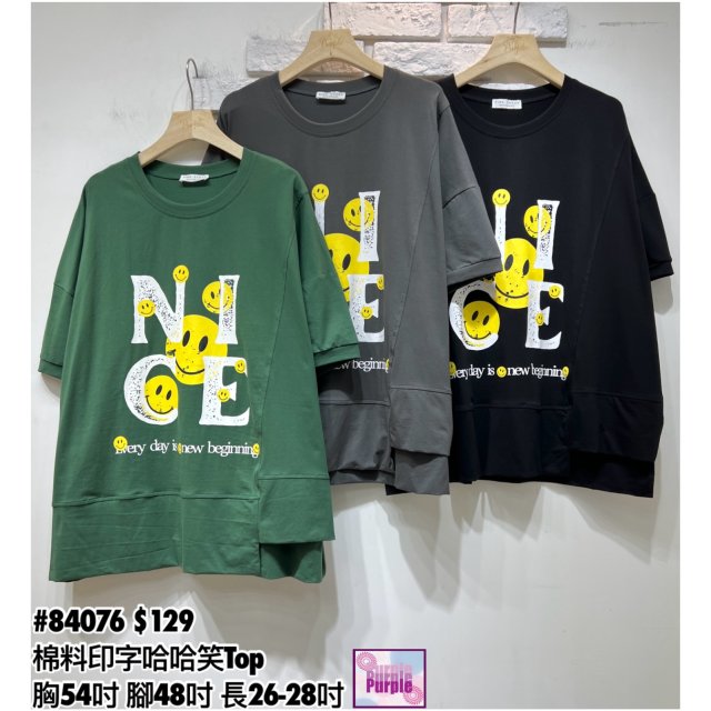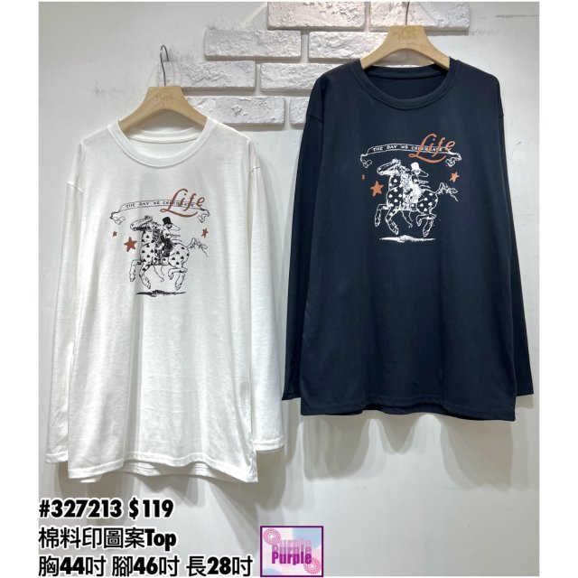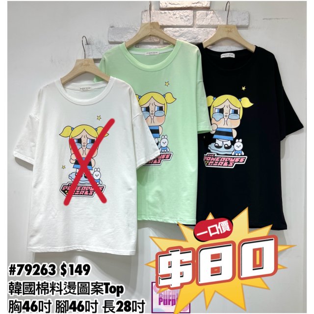 (現貨) #79263 韓國棉料燙圖案Top (胸46吋 腳46吋 長28吋)