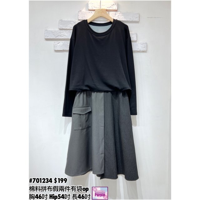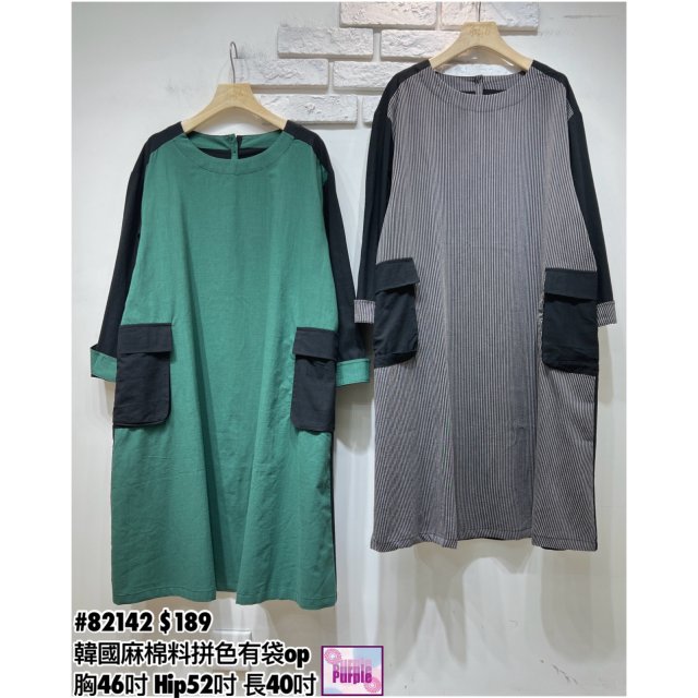 (現貨) #83807 棉料拼喱士腳有袋連身裙 (胸50吋 Hip50吋 長41吋)