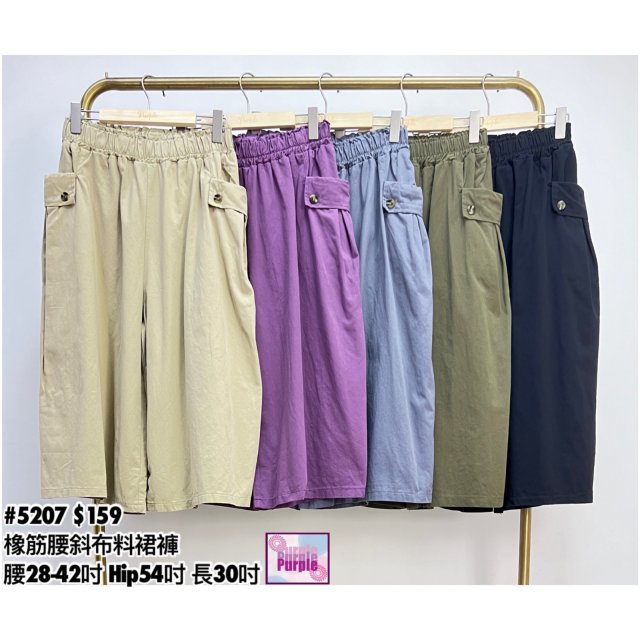 (現貨) #5207 橡筋腰斜布料裙褲(腰28-42吋 Hip54吋 長30吋)