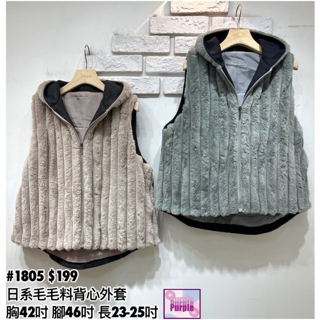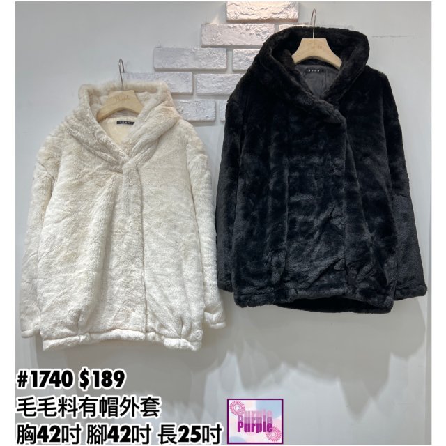 (現貨) #1740 毛毛料有帽外套 (胸42吋 腳42吋 長25吋)