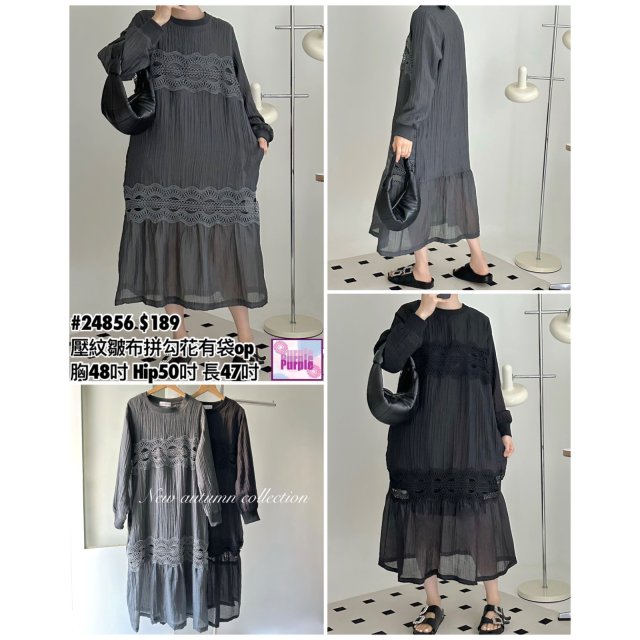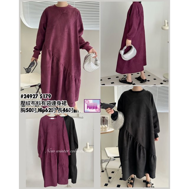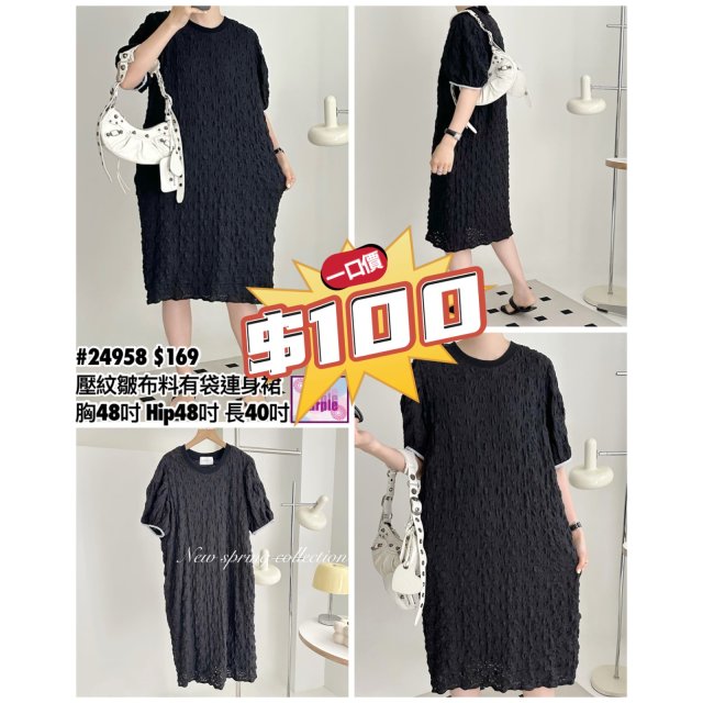 (現貨) #24958 BONNIE壓紋皺布料有袋連身裙 (胸48吋 Hip48吋 長40吋)