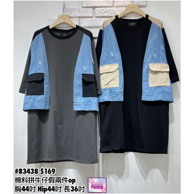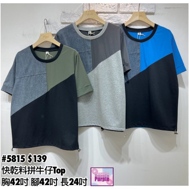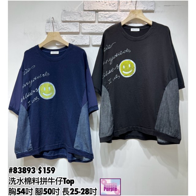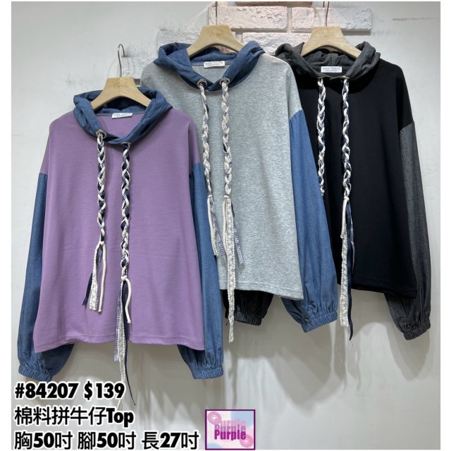 (現貨) #84207 棉料拼牛仔Top (胸50吋 腳50吋 長27吋)