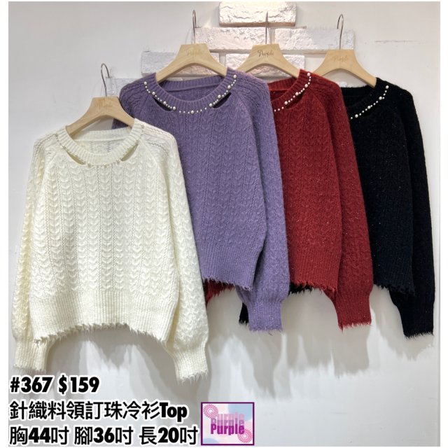 (現貨) #367 針織料領訂珠冷衫Top (胸44吋 腳36吋 長20吋)