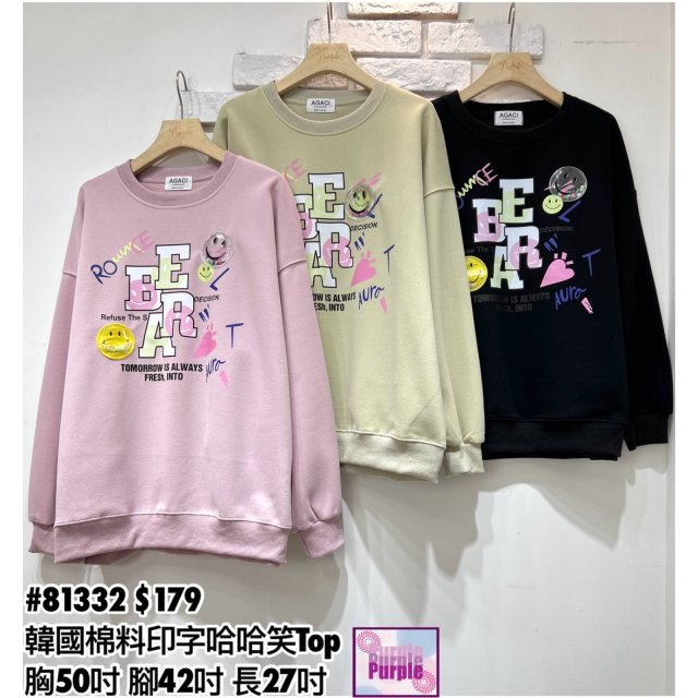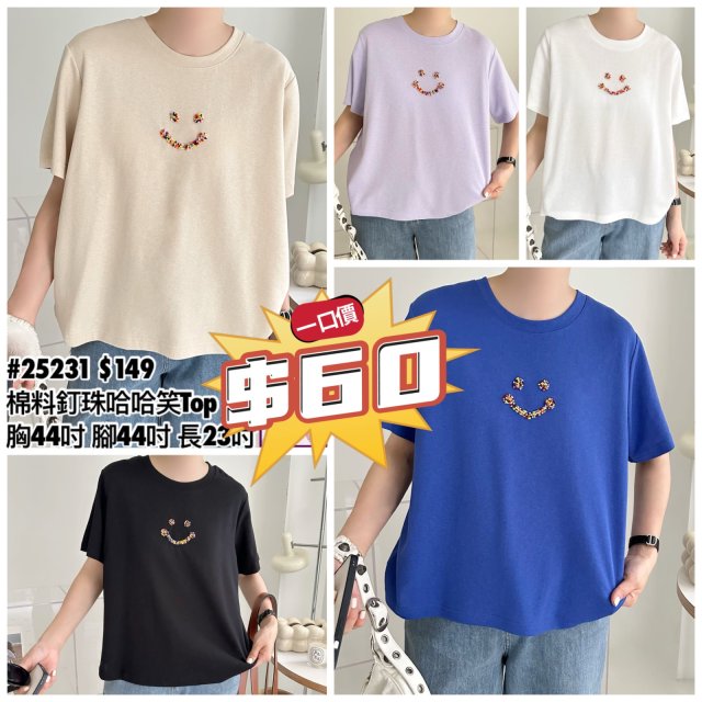 (現貨) #25231 BONNIE棉料釘珠哈哈笑Top (胸44吋 腳44吋 長23吋)