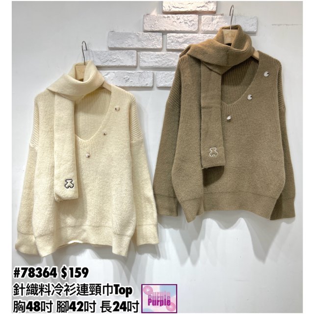 (現貨) #78364 針織料冷衫連頸巾Top (胸48吋 腳42吋 長24吋)