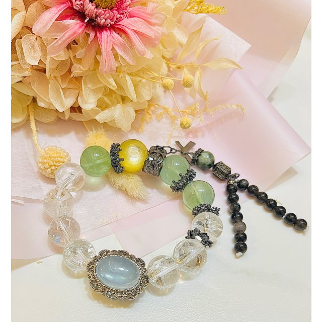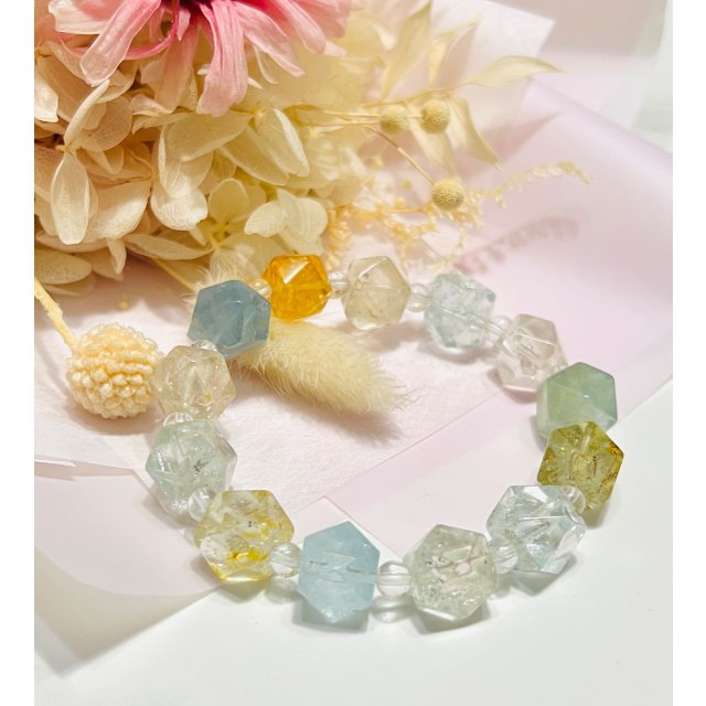 🔮海藍寶盒子配黃金鋰雲母綠螢石白水晶仙女手串🔮14mm