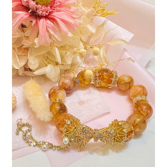 🔮黃膠花配金虎眼仙女手串🔮14mm