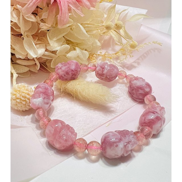 🔮粉紫鋰雲母貔貅水晶手串🔮11mm