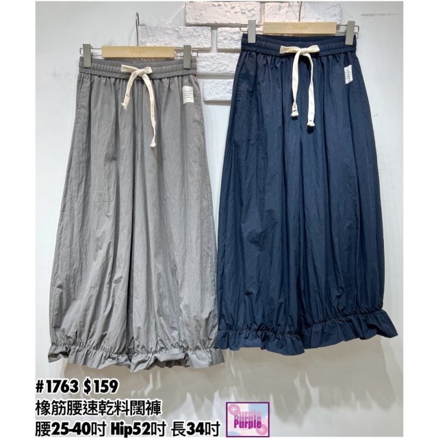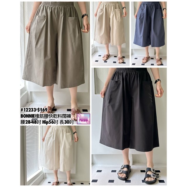 (現貨) #12233 BONNIE橡筋腰快乾料闊褲 (腰28-48吋 Hip56吋 長30吋)