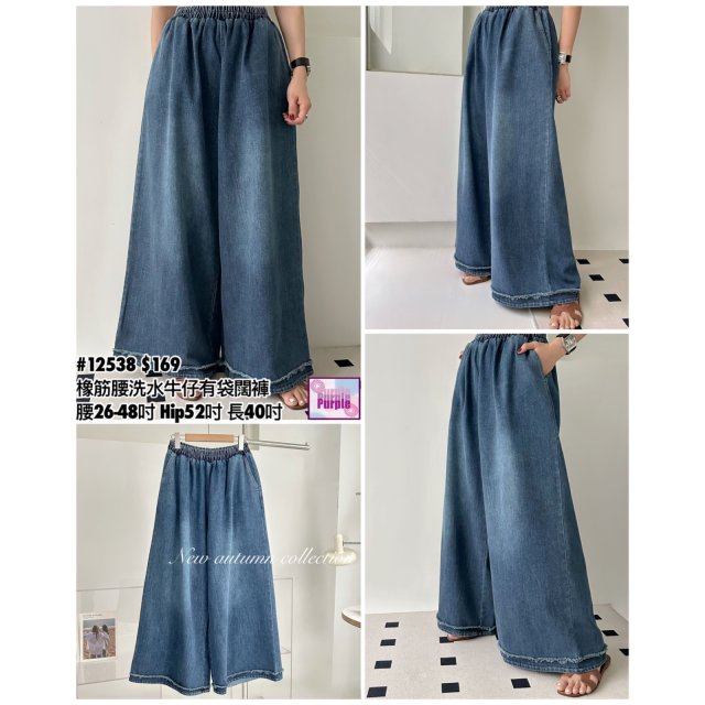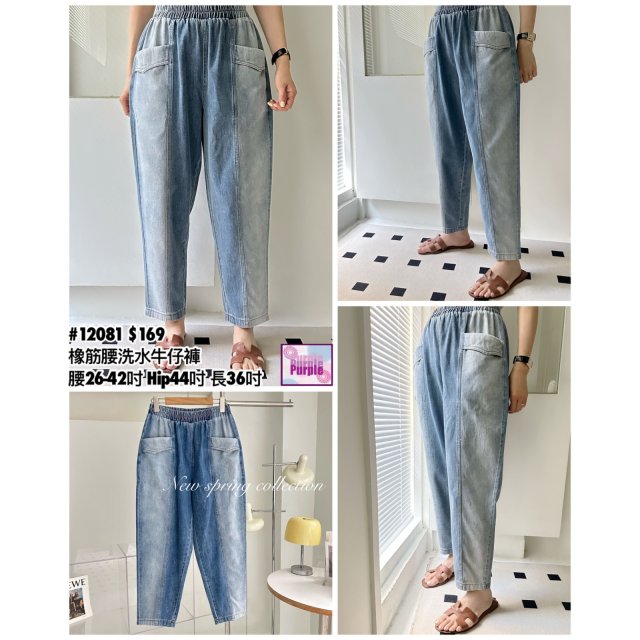 (現貨) #12081 BONNIE橡筋腰洗水牛仔褲 (腰26-42吋 Hip44吋 長36吋)