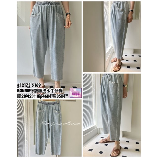 (現貨) #12173 BONNIE橡筋腰洗水牛仔褲 (腰28-42吋 Hip46吋 長35吋)