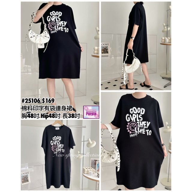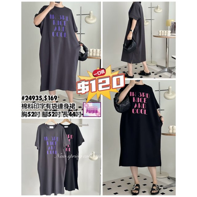 (現貨) #24935 BONNIE棉料印字有袋連身裙 (胸52吋 腳52吋 長44吋)