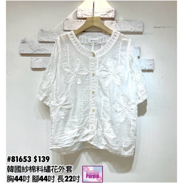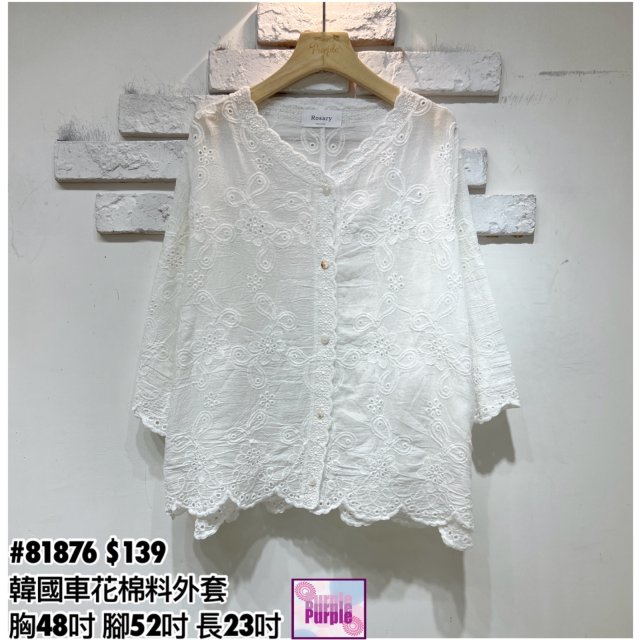 (現貨) #81876 韓國車花棉料外套 (胸48吋 腳52吋 長23吋)
