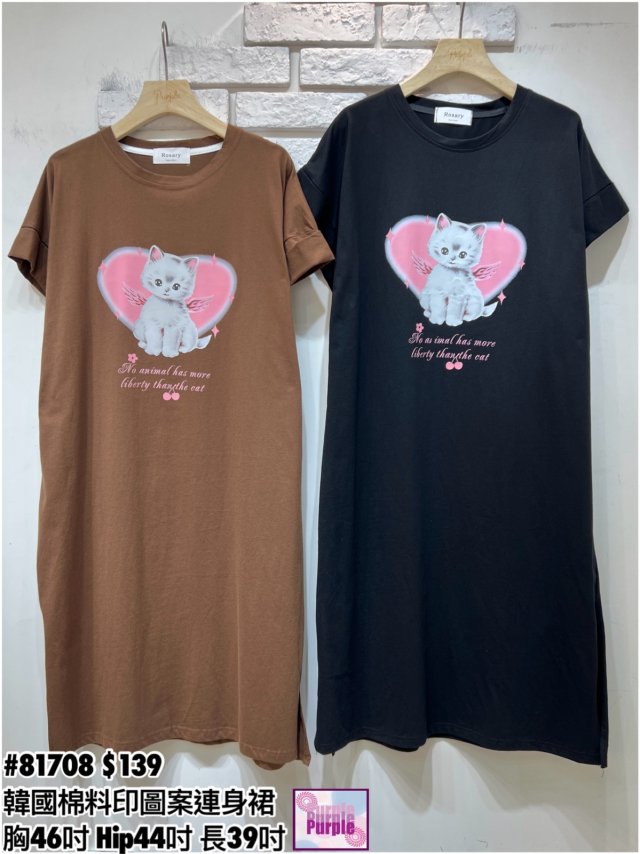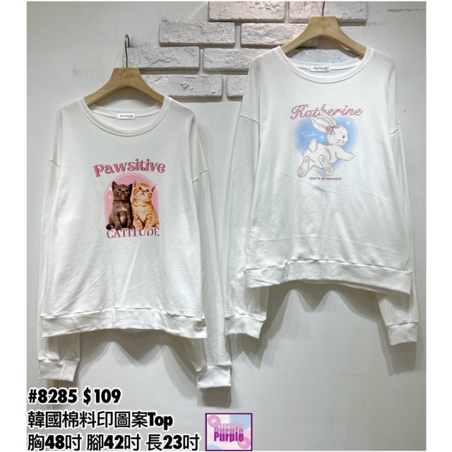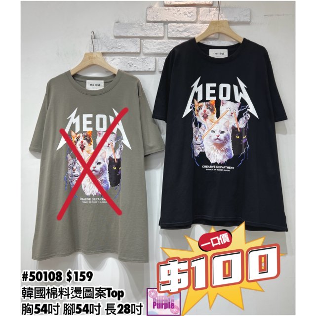 (現貨) #50108 韓國棉料燙貓貓圖案Top (胸54吋 腳54吋 長28吋)