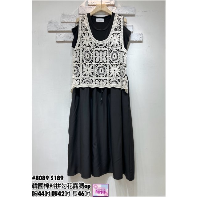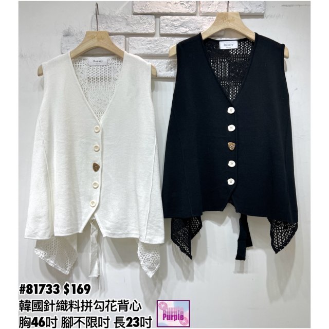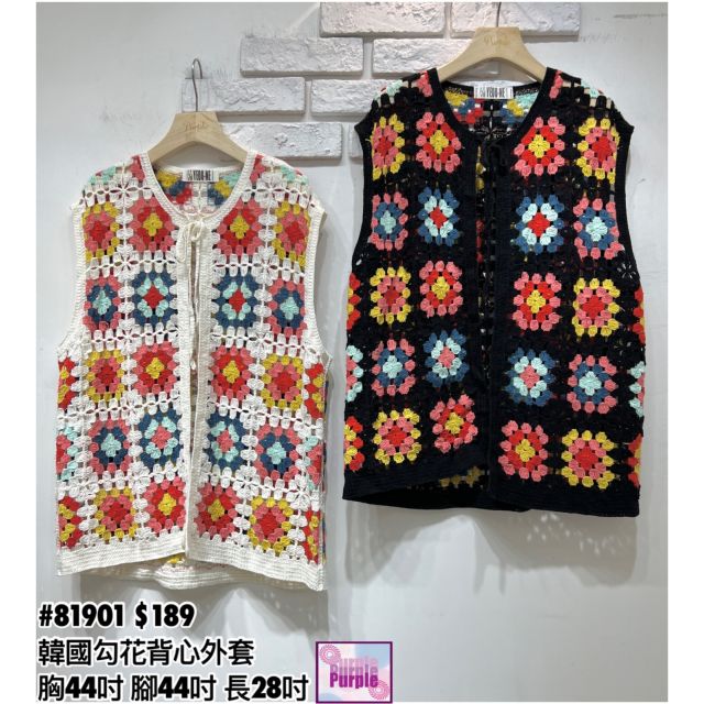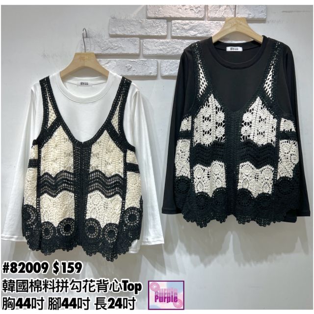 (現貨) #82009 韓國棉料拼勾花背心Top (胸44吋 腳44吋 長24吋)