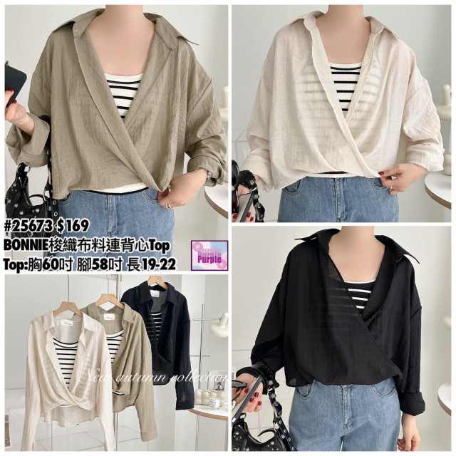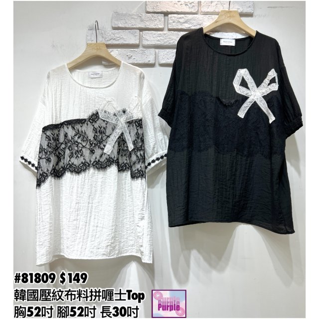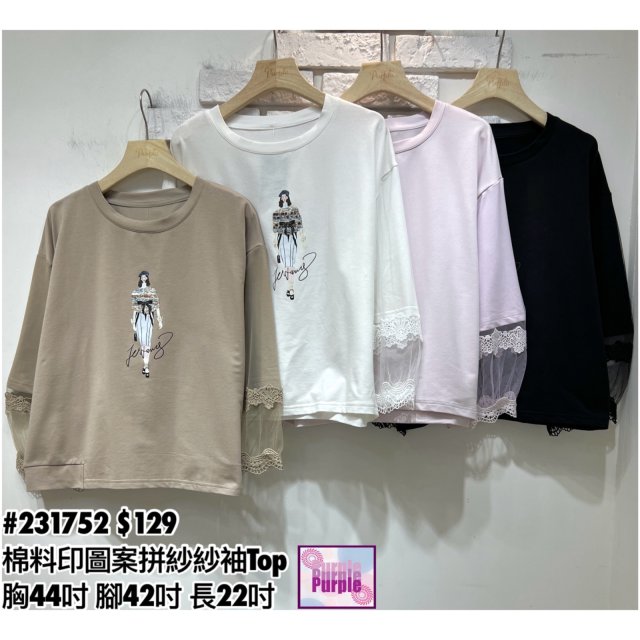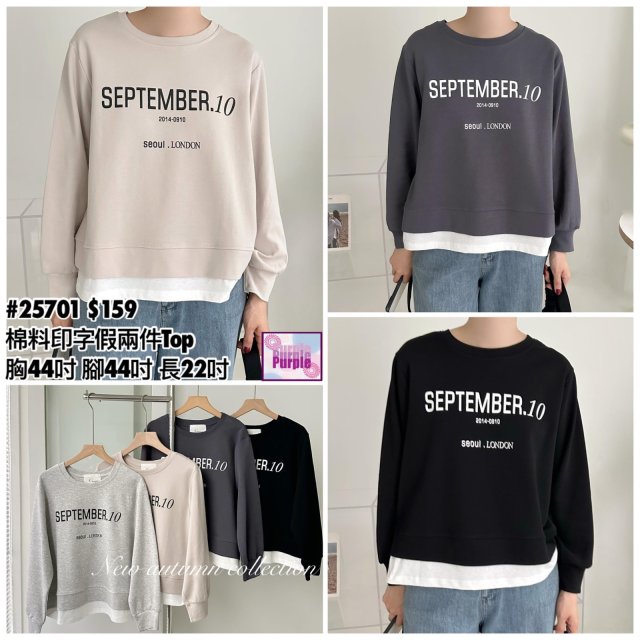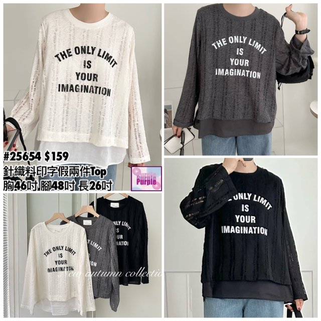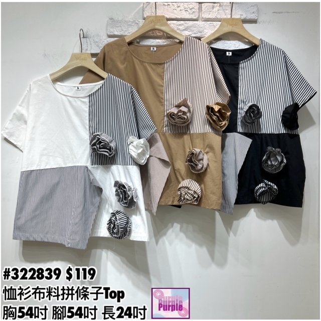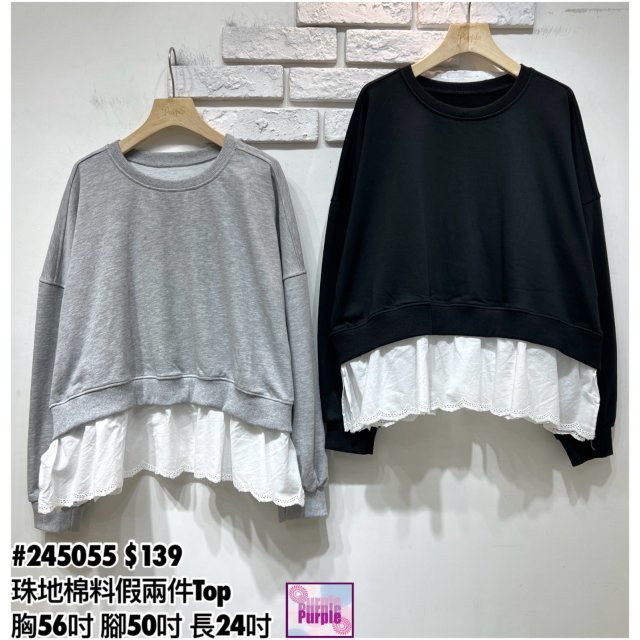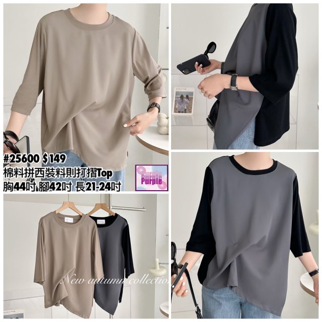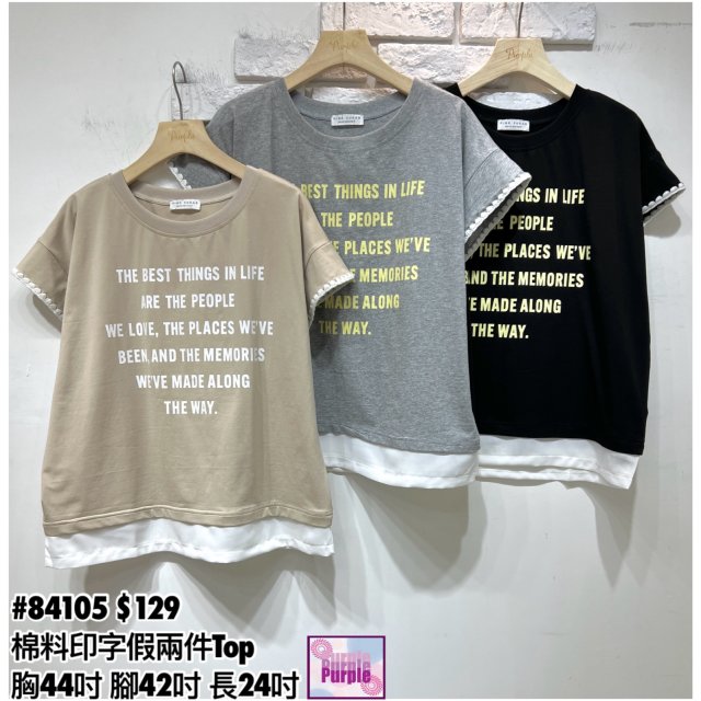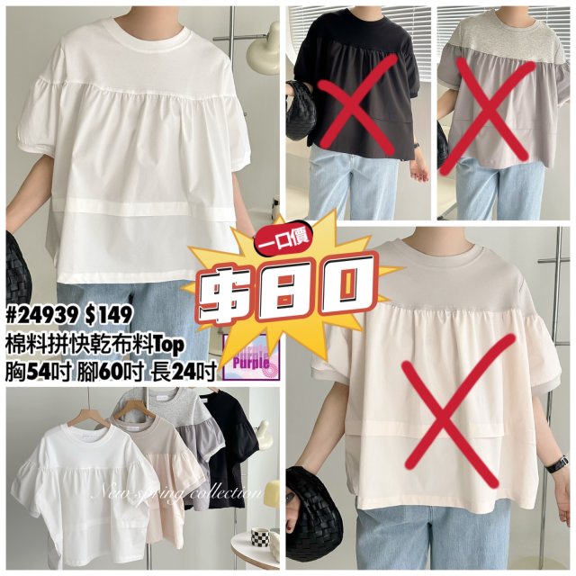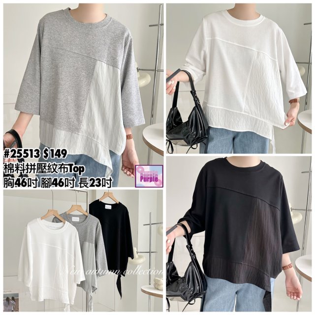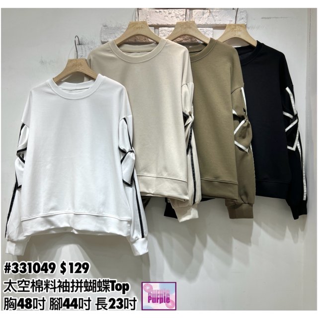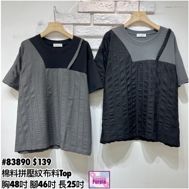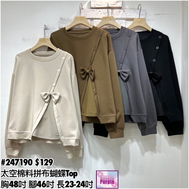 (訂貨大約20天) #248177 棉料拼蝴蝶袖假兩件Top (胸46吋 腳38吋 長25吋)
