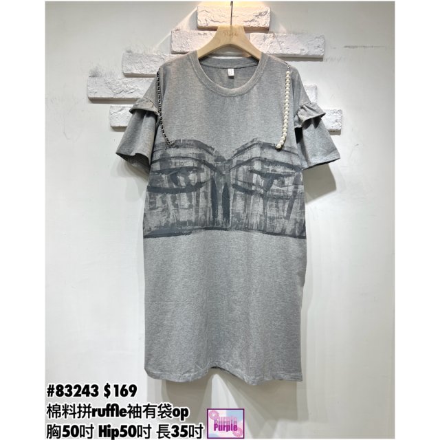 (現貨) #83243 棉料拼珠鏈ruffle袖有袋連身裙(胸50吋 Hip50吋 長35吋)