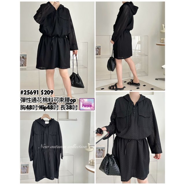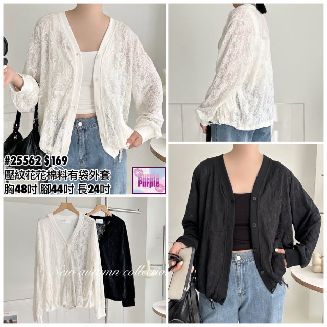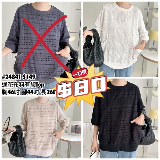 (現貨) #24841 BONNIE通花布料有袋Top (胸46吋 腳44吋 長26吋)