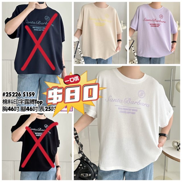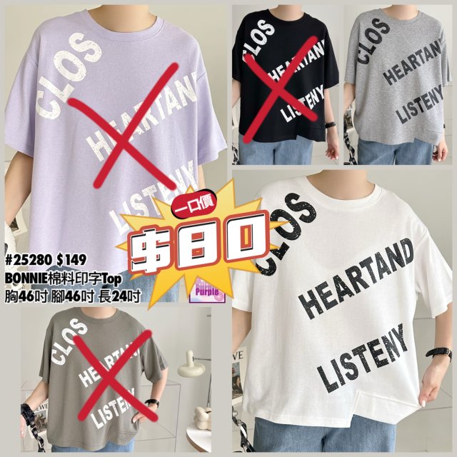 (現貨) #25280 BONNIE棉料印字Top (胸46吋 腳46吋 長24吋)