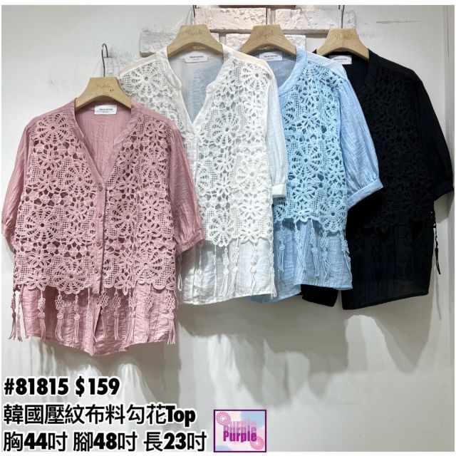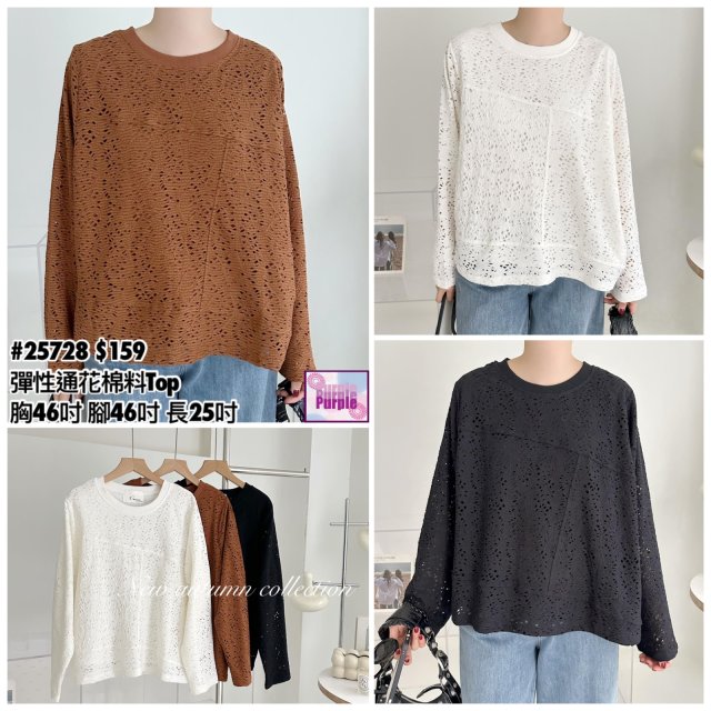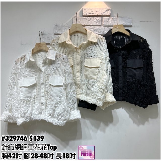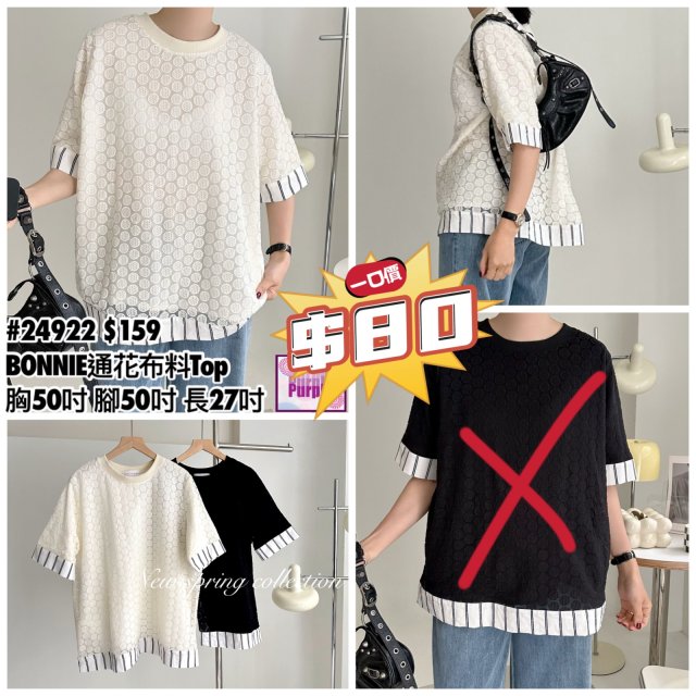 (現貨) #24922 BONNIE通花布料Top (胸50吋 腳50吋 長27吋)