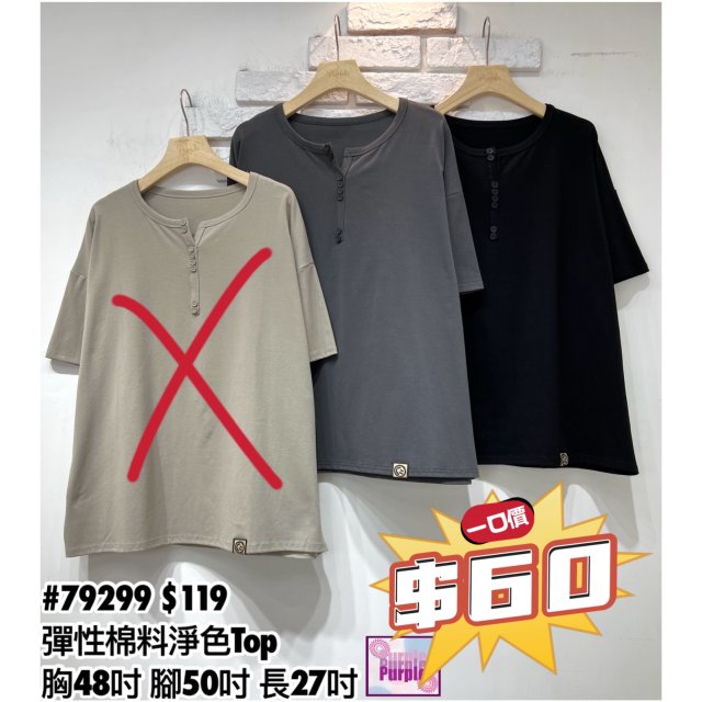 (現貨) #79299 彈性棉料Top (胸48吋 腳50吋 長27吋)