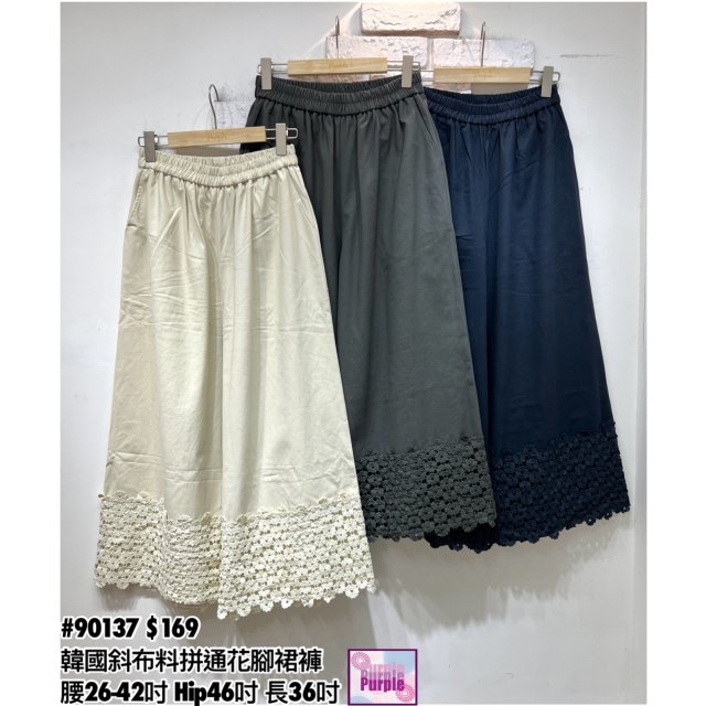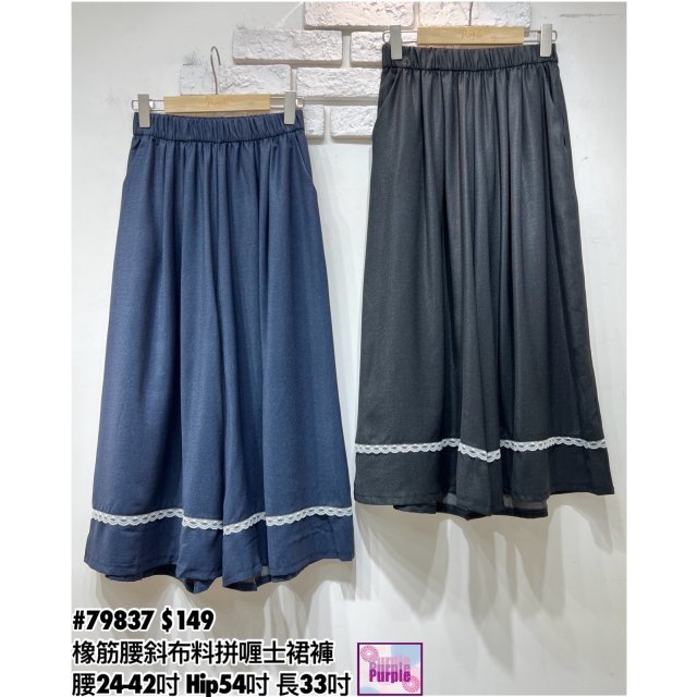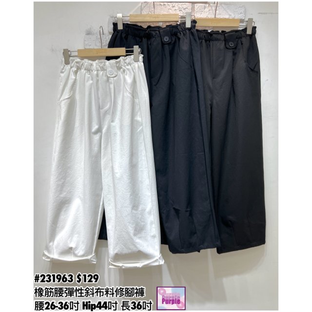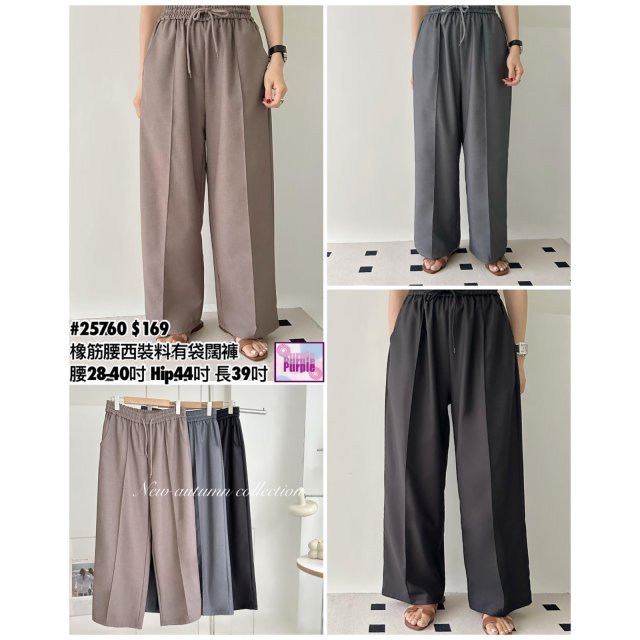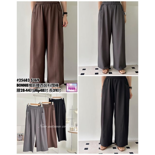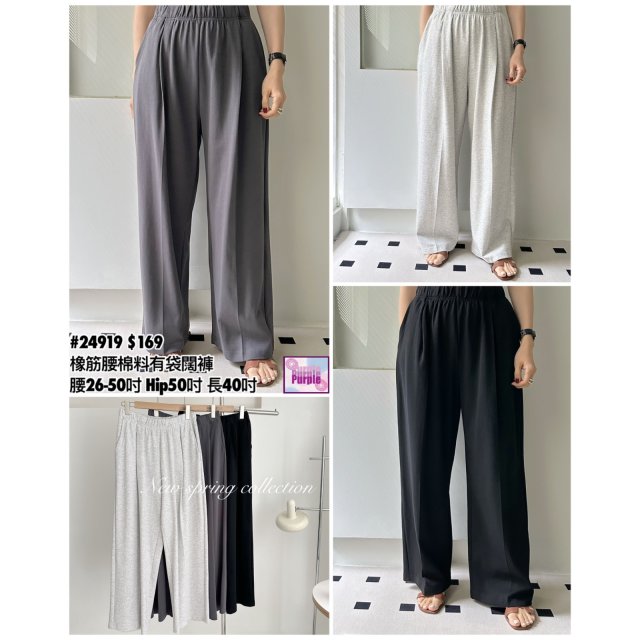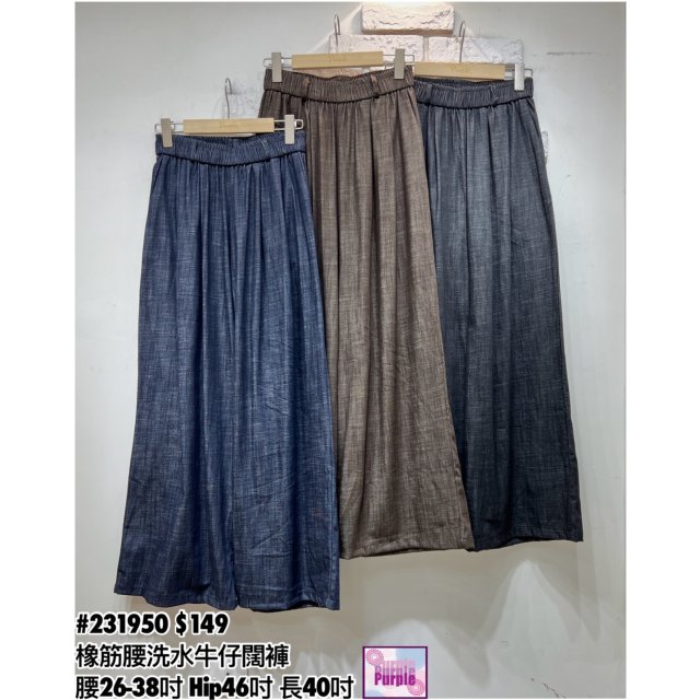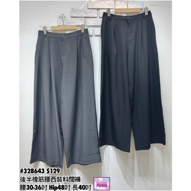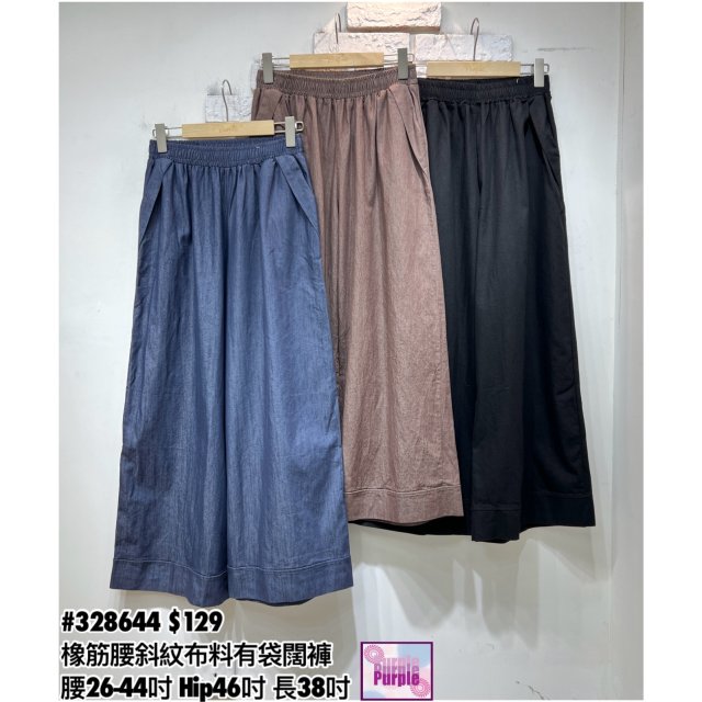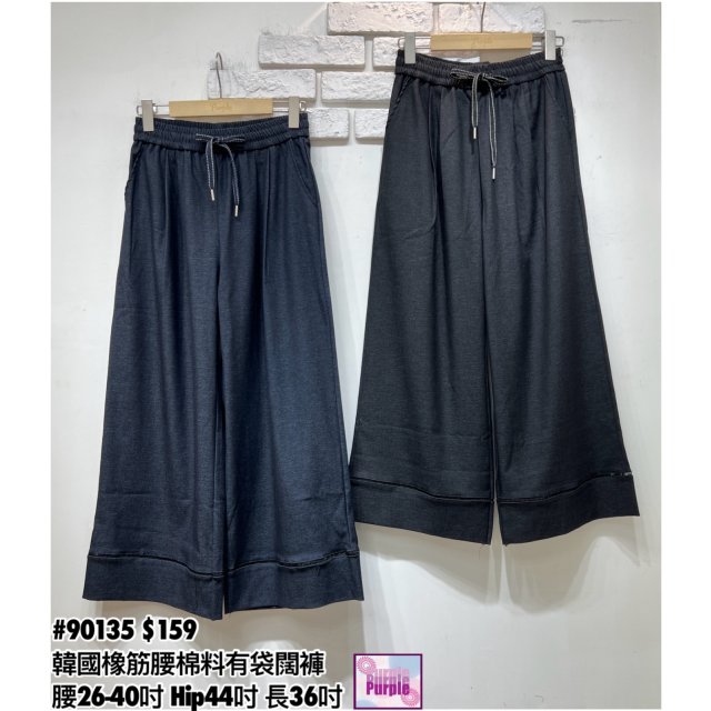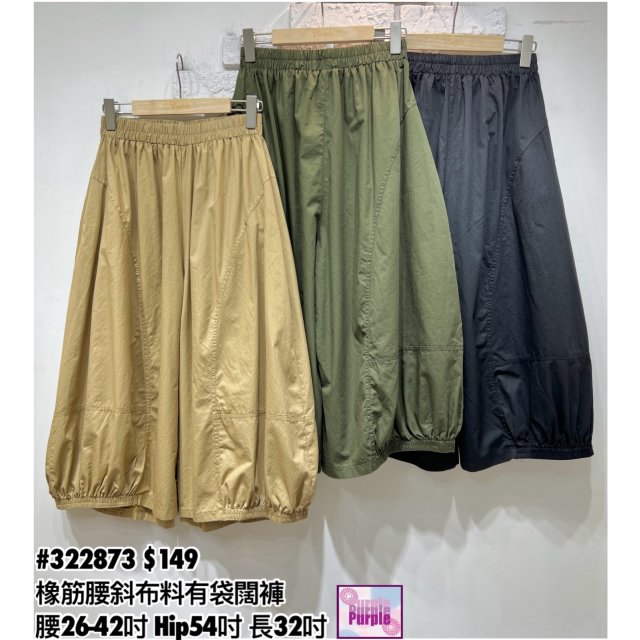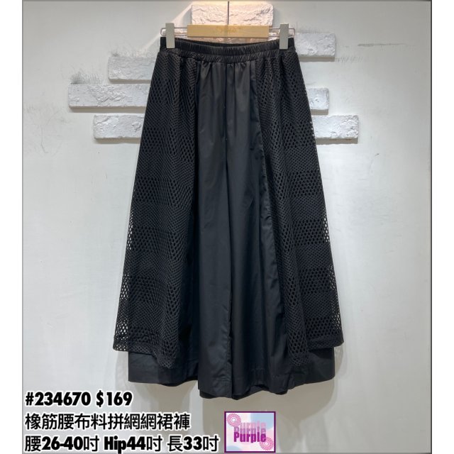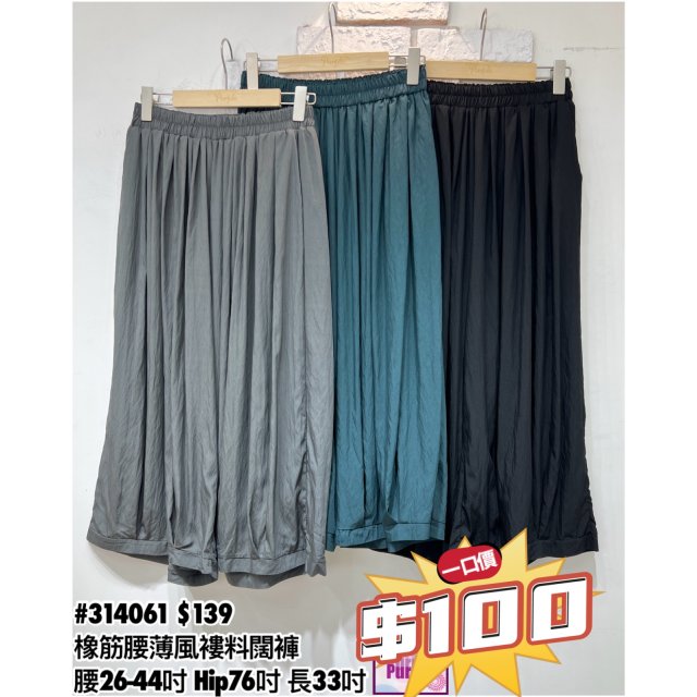 (現貨) #314061 橡筋腰薄風褸料闊褲 (腰26-44吋 Hip76吋 長33吋)