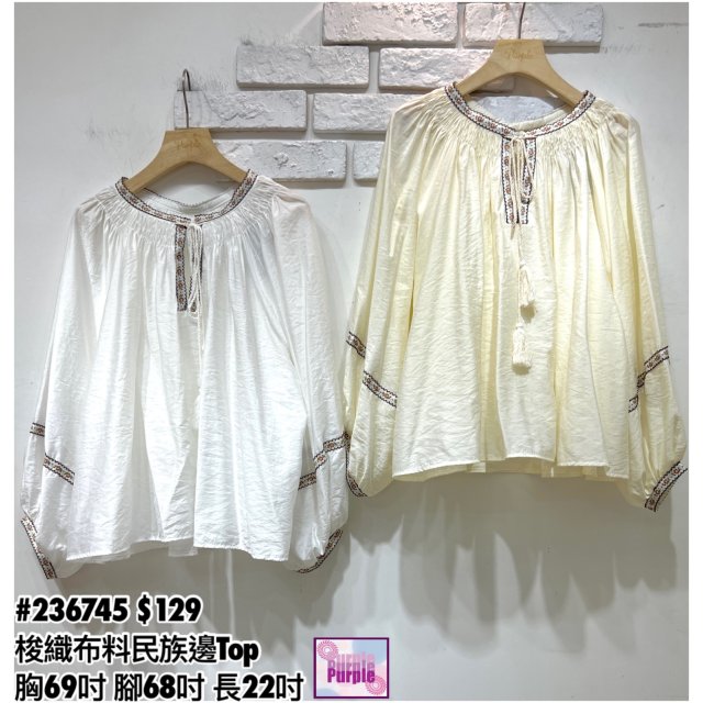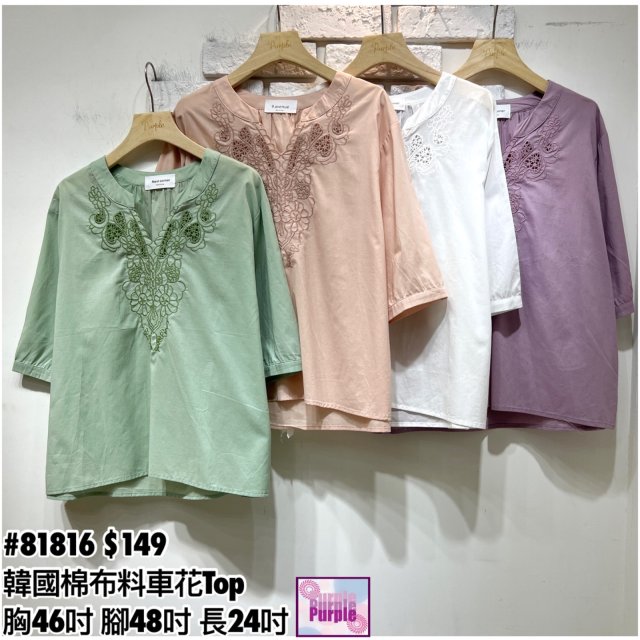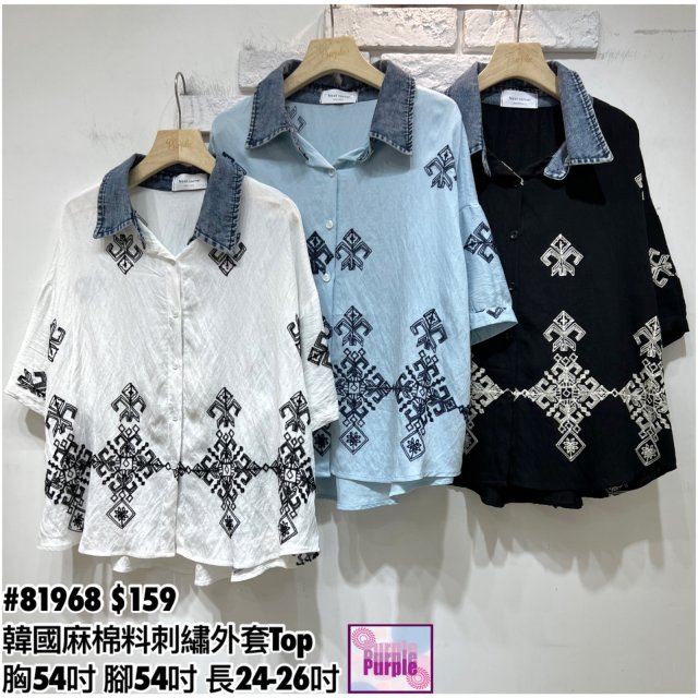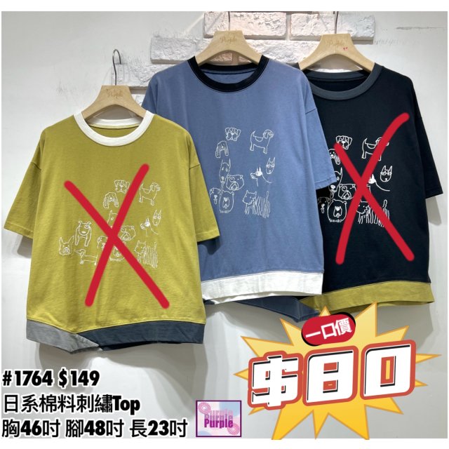 (現貨) #1764 日系棉料刺繡Top (胸46吋 腳48吋 長23吋)