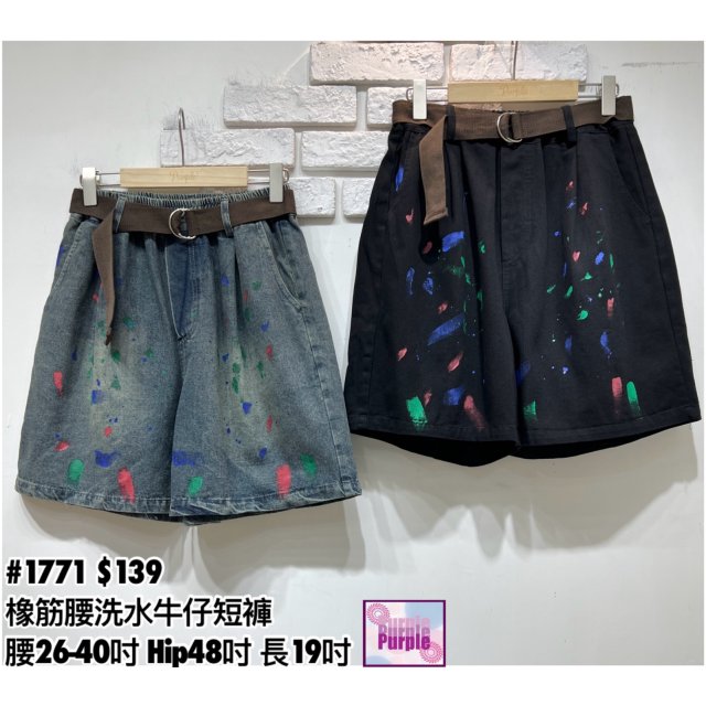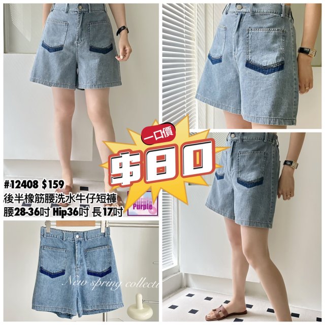 (現貨) #12408 BONNIE後半橡筋腰洗水牛仔短褲 (腰28-36吋 Hip36吋 長17吋)