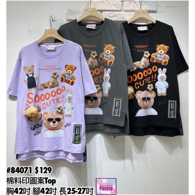 (現貨) #81490 韓國棉料印熊仔圖案Top (胸52吋 腳52吋 長30吋)