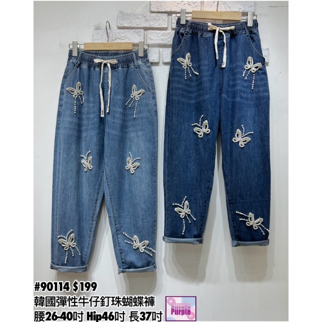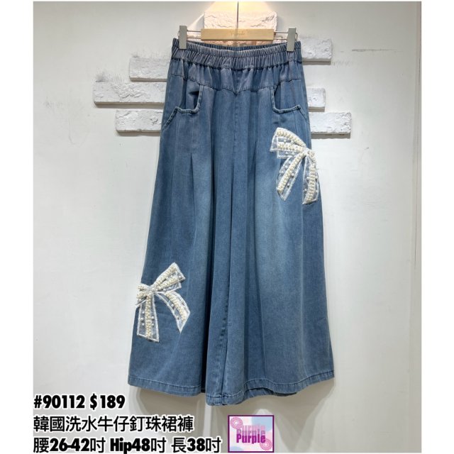 (現貨) #90112 韓國洗水牛仔釘珠蝴蝶裙褲 (腰26-42吋 Hip48吋 長38吋)