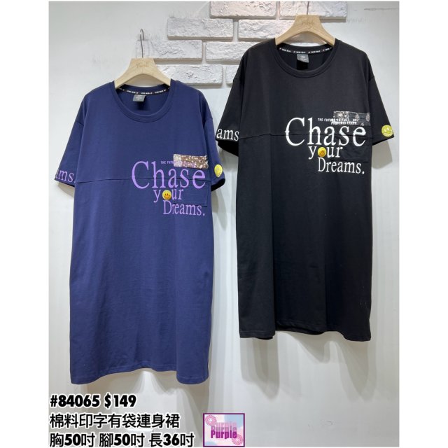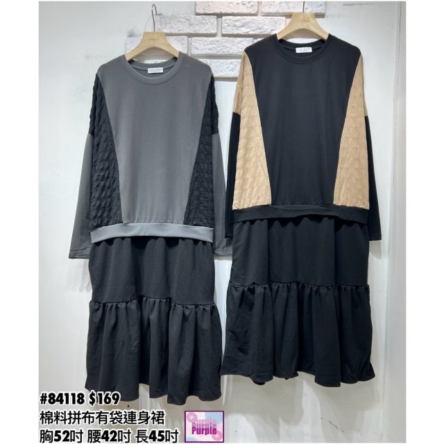 (現貨) #84145 棉料拼絲絨料有袋連身裙 (胸50吋 Hip50吋 長37吋)