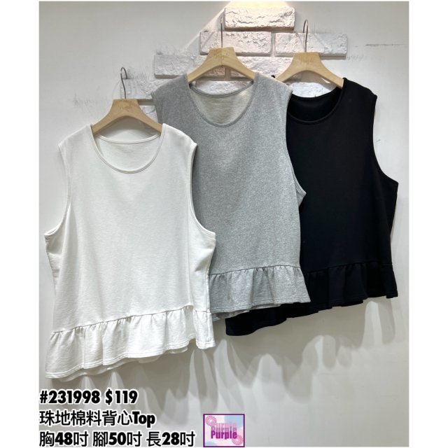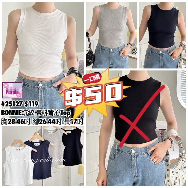 (現貨) #25127 BONNIE坑紋棉料背心Top (胸28-46吋 腳26-44吋 長17吋)