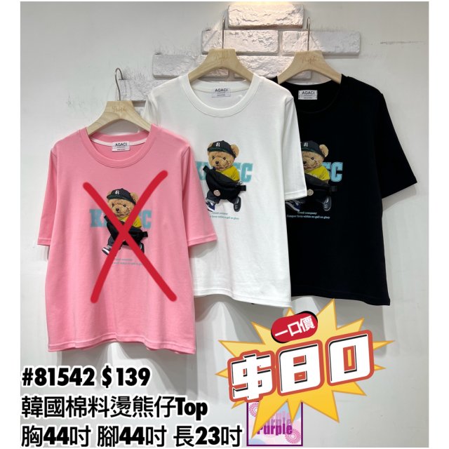 (現貨) #81542 韓國棉料燙熊仔Top (胸44吋 腳44吋 長23吋)