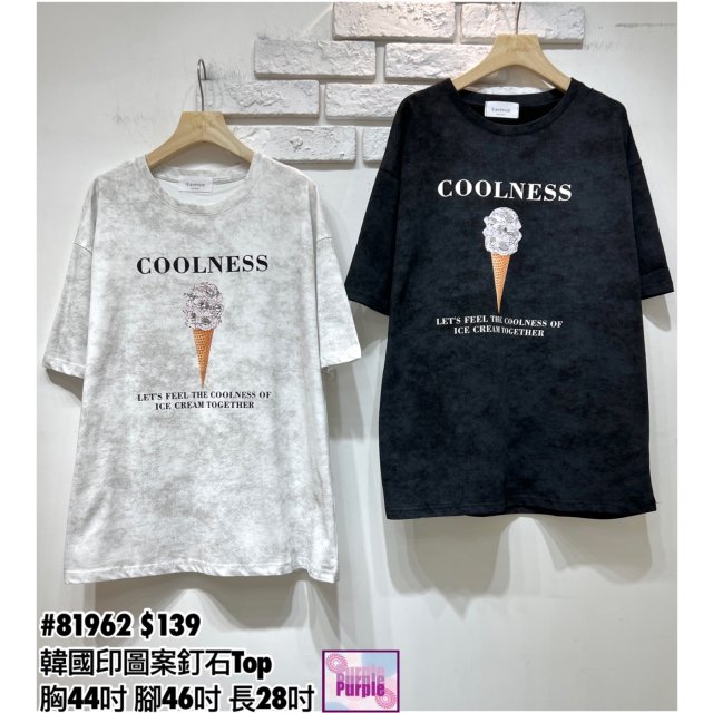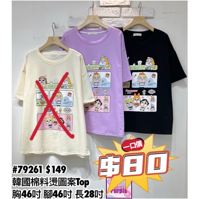 (現貨) #79261 韓國棉料燙圖案Top (胸46吋 腳46吋 長28吋)