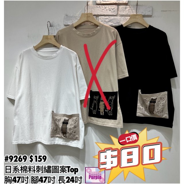 (現貨) #9269 日系棉料刺繡圖案有袋Top (胸47吋 腳47吋 長24吋)