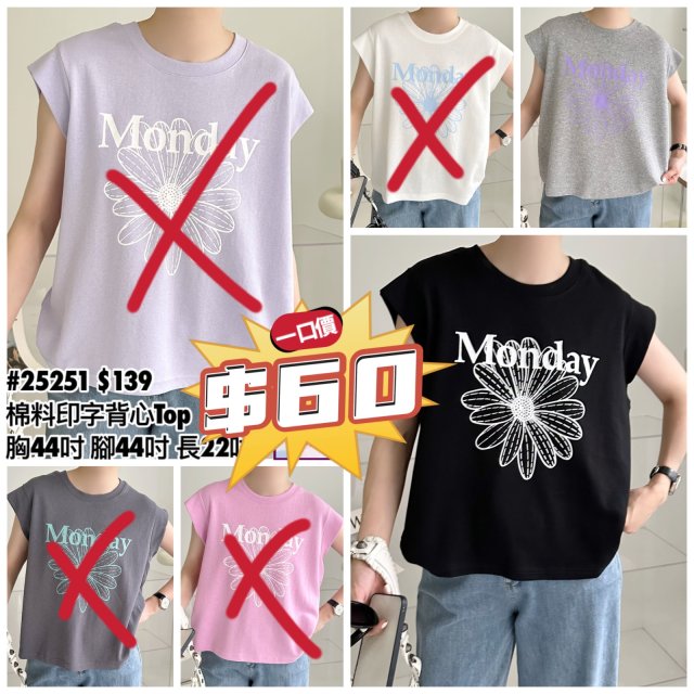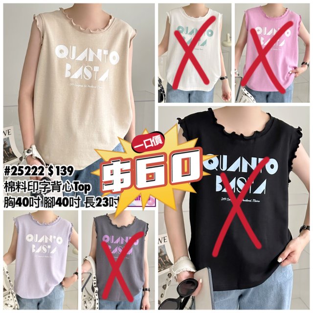 (現貨) #25251 BONNIE棉料印字背心Top (胸44吋 腳44吋 長22吋)