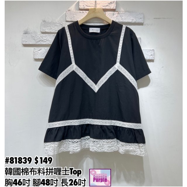 (現貨) #81839 韓國棉布料拼喱士Top (胸46吋 腳48吋 長26吋)