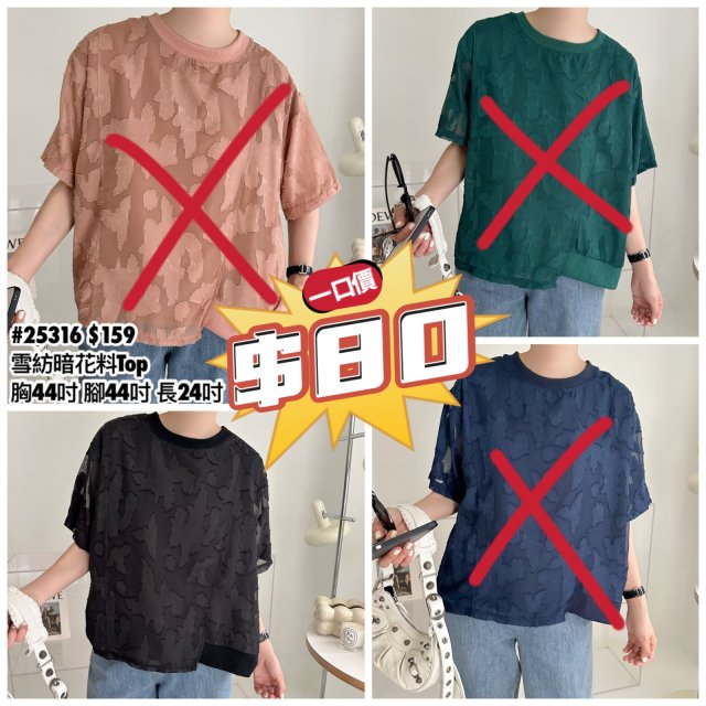 (現貨) #25316 BONNIE雪紡暗花料Top (胸44吋 腳44吋 長24吋)