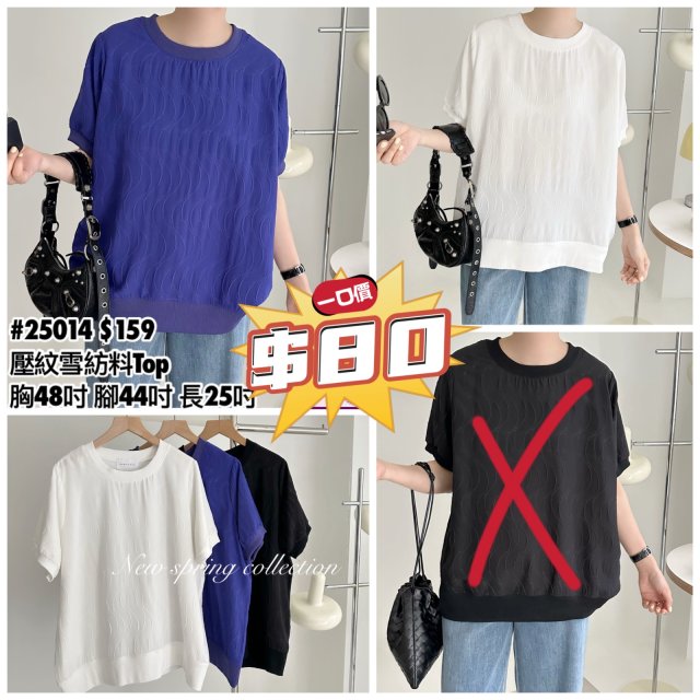(現貨) #25014 BONNIE壓紋雪紡料Top (胸48吋 腳44吋 長25吋)