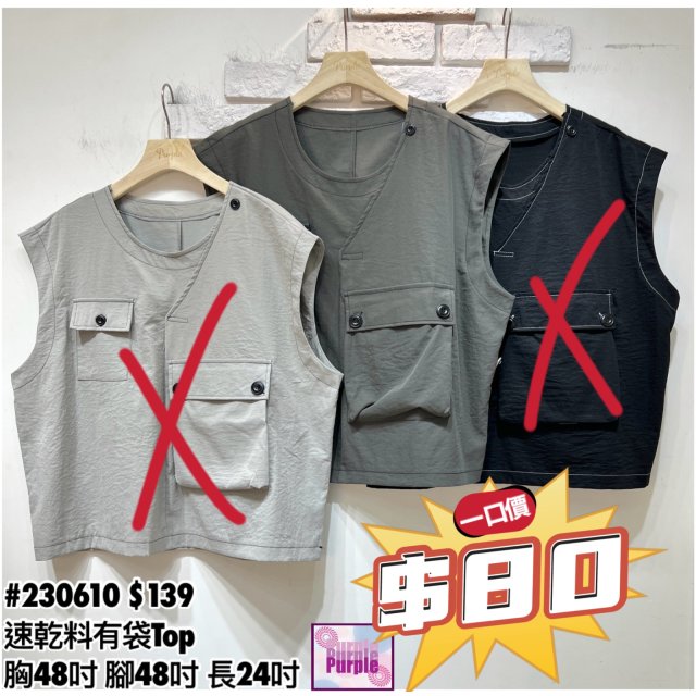 (現貨) #230610 速乾料有袋Top (胸48吋 腳48吋 長24吋)