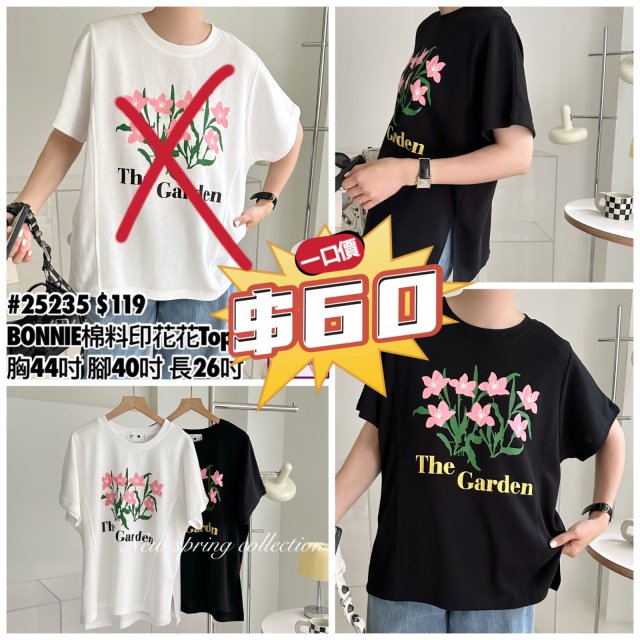 (現貨) #25235 BONNIE棉料印花花Top (胸44吋 腳40吋 長26吋)
