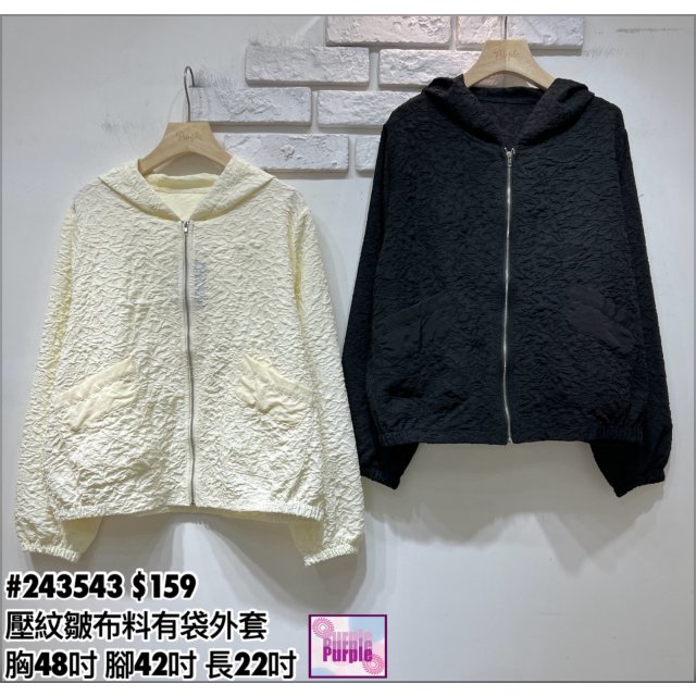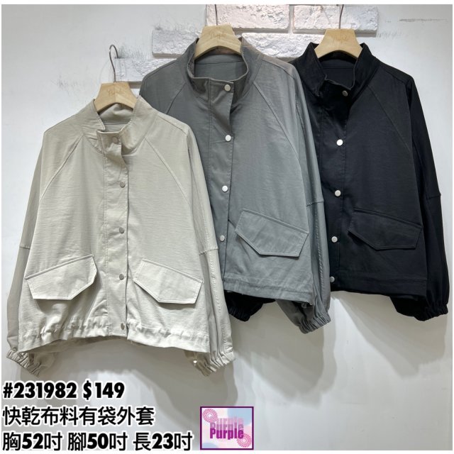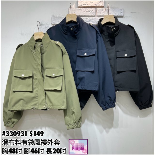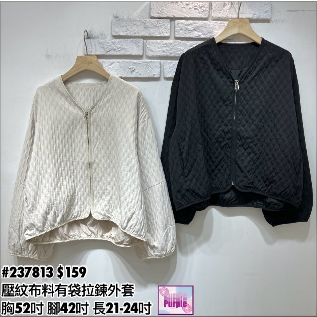(現貨) #10107 棉料有袋拉鍊外套 (胸46吋 腳46吋 長25吋)