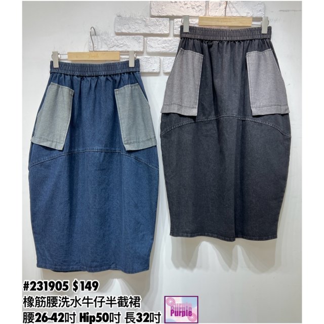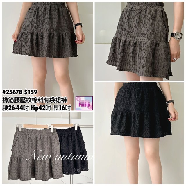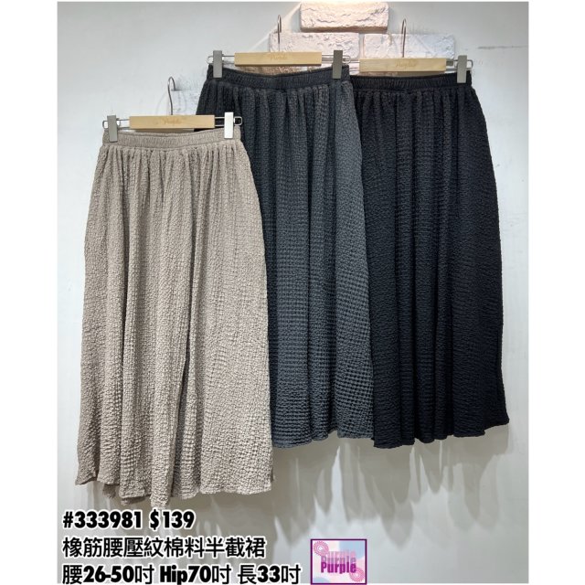 (訂貨大約20天) #333981 橡筋腰壓紋棉料有袋半截裙 (腰26-50吋 Hip70吋 長33吋)