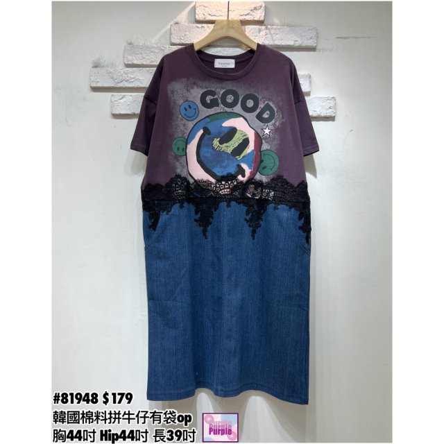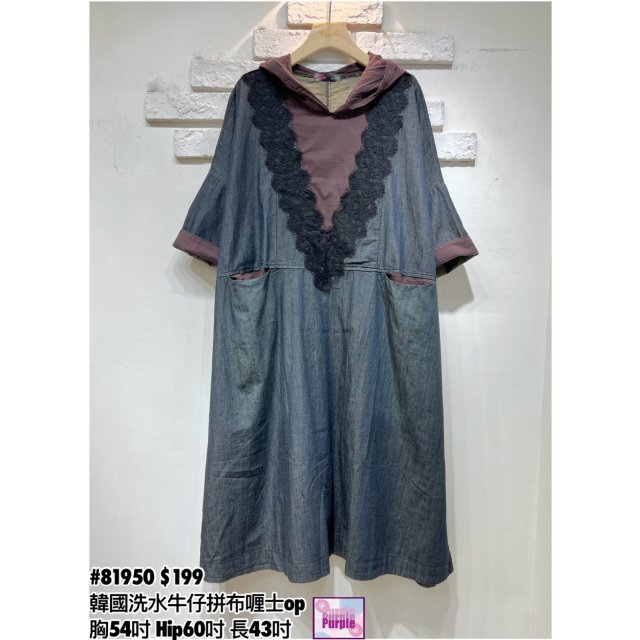 (現貨) #81950 韓國洗水牛仔拼布喱士有袋連身裙 (胸54吋 Hip60吋 長43吋)