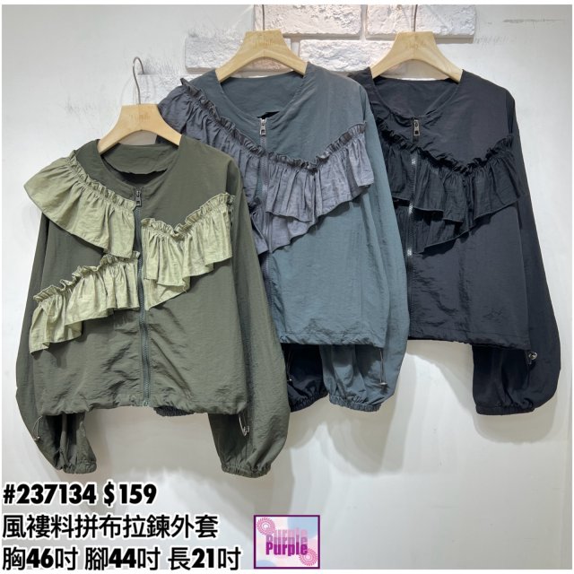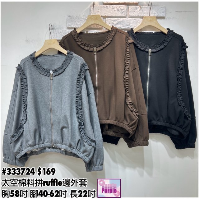 (訂貨大約20天) #333724 太空棉料拼ruffle邊外套 (胸58吋 腳40-62吋 長22吋)