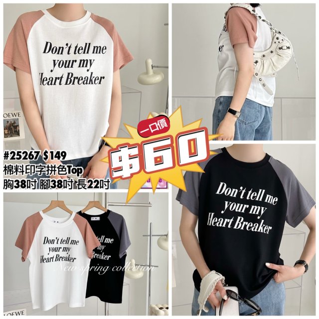 (現貨) #25267 BONNIE棉料印字拼色Top (胸38吋 腳38吋 長22吋)